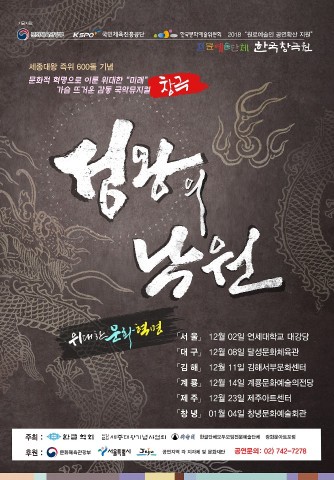 [아유경제=김재현 기자] 전문예술단체 한국창극원(대표 박종철)이 세종대왕 즉위 600돌을 기념하며 창극 `성왕의 낙원` 공연을 올린다.