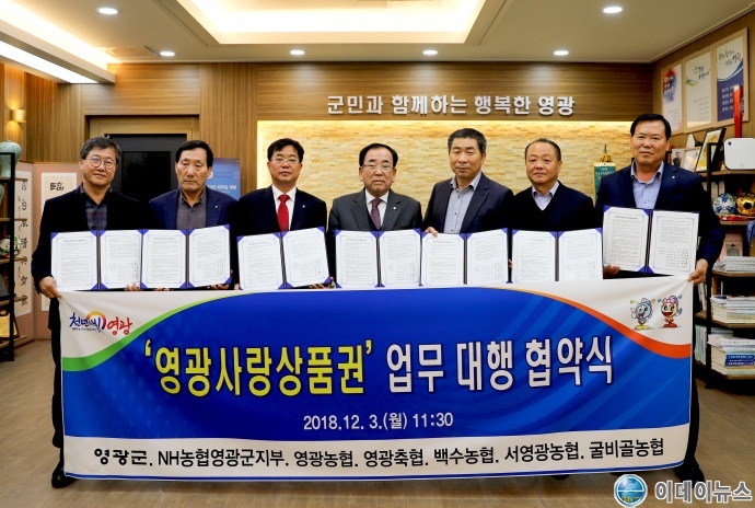 이날 협약에 따라 2019년 1월 1일부터 관내 NH농협 영광군지부, 지역농(축)협에서 영광사랑 상품권 판매 및 환전 업무를 하게 된다.