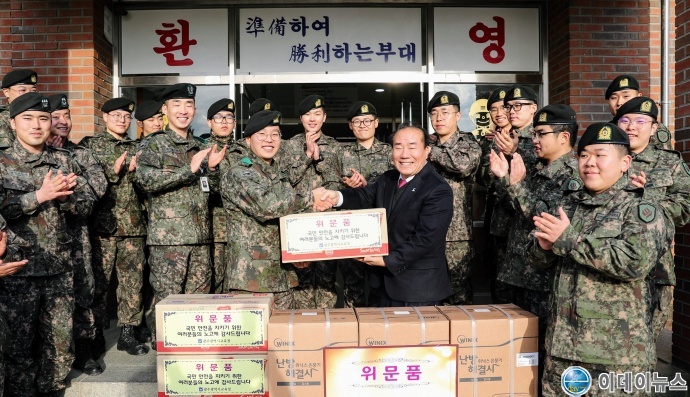 장휘국 광주광역시교육감이 성탄절과 연말을 맞아 24일 광주지역 민생치안과 국민안전을 위해 복무 중인 503보병여단 5대대 군장병들과 동부경찰서 방범순찰대, 북부경찰서 방범순찰대 대원들과 만나 위문품을 전달하고 관계자들을 격려했다.