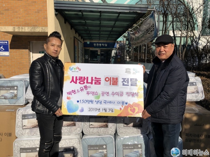 지난 3일 강변가요제 출신 가수 박현은 부천시 소사본3동 복지협의체에 동절기 이불 80채를 전달했다.