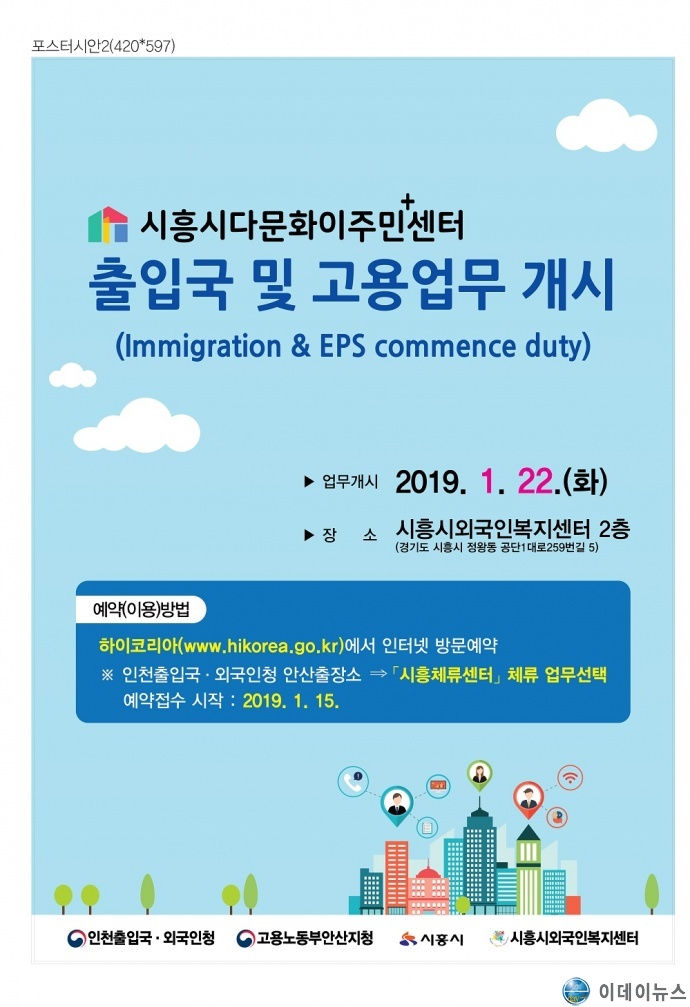 다문화이주민+센터를 설치하기 위해 시흥시는 지난해 4월 행정안전부에 공모해 특교세 1억을 받아 외국인복지센터 2층 시설을 개선했다. 여기서 법무부 및 고용노동부는 체류관리·고용허가 관련 민원 서비스를, 외국인복지센터는 상담, 통·번역 등의 적응지원 서비스를 제공한다.