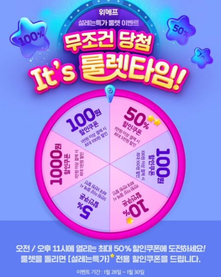 업계 소식통 등에 의하면 위메프는 오는 30일까지 설레는특가 행사를 진행한다. 특히, 한겨울 막바지 추위를 앞두고, 롱패딩이나 설 명정 아이들 한복, 가공식품 등을 구매하려는 소비자에게 위메프 설레는특가, 반값특가와 같은 행사는 기회라는 후문이다.