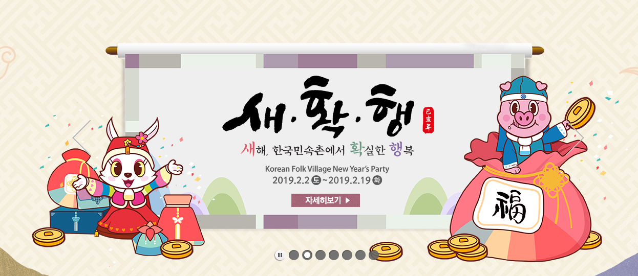 한국민속촌의 12지 수호대 캐릭터가 알려주는 띠별 운세를 비롯해 윷가락으로 한 해 운을 점치는 윷점은 관아 앞 공터에서 상시로 운영될 예정이다. 사람의 길흉화복이 담긴 토정비결로 보는 기해년 운세는 행사기간 동안 민속마을 안에서 오후 12시 30분부터 4시 30분까지 진행된다.
