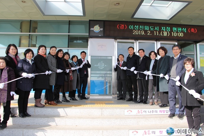 강인규 나주시장은 11일 시청 현관에서 여성친화도시 지정에 따른 현판식을 갖고, “여성친화도시 조성 및 양성평등실현을 목표로 한 맞춤형 정책 추진에 박차를 가해가겠다.”고 밝혔다.