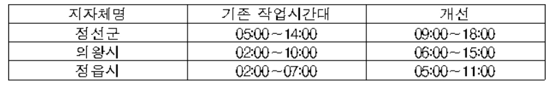 출근시간대 혼잡으로 인한 주민불편, 일부 상가지역 주차차량으로 인한 청소작업 불편 등이 초래될 수 있는 점을 감안, 지자체로 하여금 주간근무의 필요성과 주민들의 협조 사항을 사전에 홍보ㆍ안내하는 노력도 병행하도록 했다.