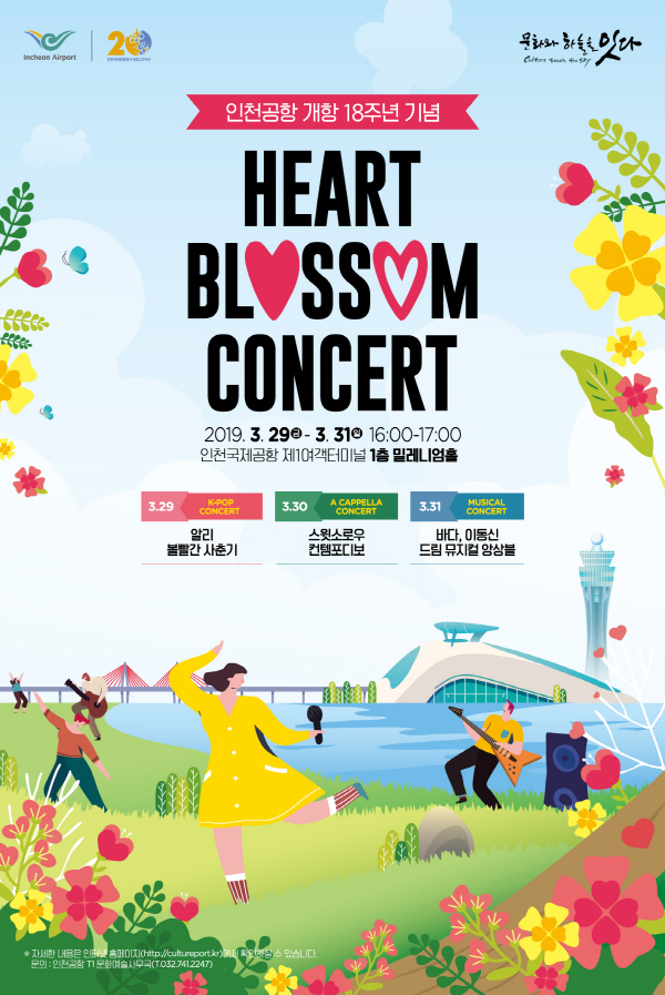 21일 인천공항에 따르면 `HEART BLOSSOM CONCERT`는 오는 29일부터 31일까지 3일간 인천공항 제1여객터미널 1층 밀레니엄홀에서 열린다.