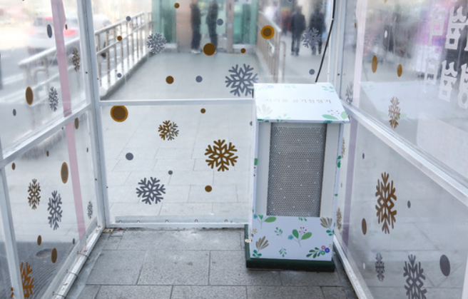 미세먼지 대피소에 있는 공기청정기는 스탠드형으로, 서초구가 민간 기업으로부터 임차한 것이다. 외부 미세먼지 농도에 따라 공기청정기가 자동으로 작동하도록 설정돼 있다.