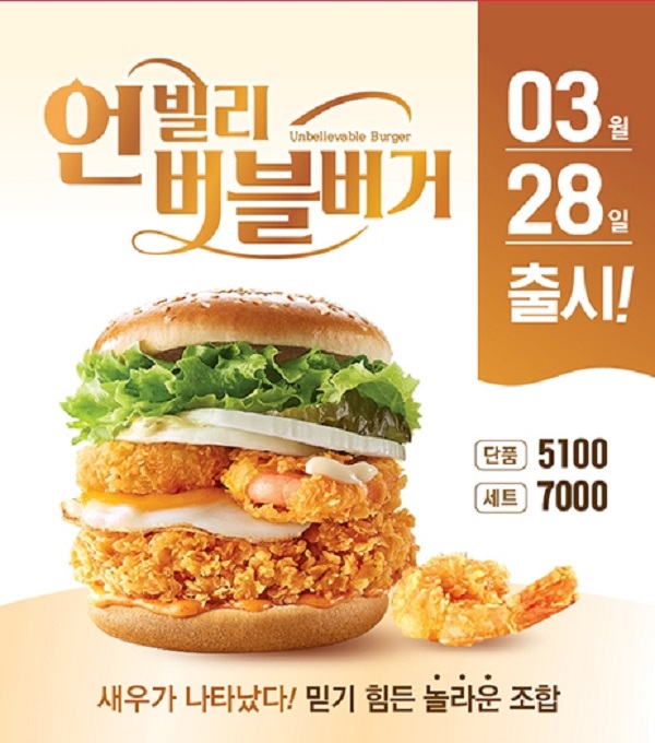 28일 출시된 맘스터치의 `언블리버블`은 치킨 패티와 계란 프라이, 새우 패티가 모두 들어간 버거다.