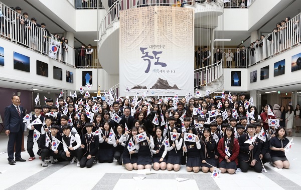 또한 윤재국 교장은 "독도는 역사적ㆍ지리적ㆍ국제법적으로 명백한 우리 고유의 영토이므로 동아시아의 진정한 화해와 공동 번영을 가로막는 역사 왜곡과 독도 영토주권을 침해한 일본의 교과서를 즉각 수정해야 한다"며, "3ㆍ1 운동 100주년을 맞이하는 이때에 일본 정부는 현실을 직시하고 역사 왜곡 행위를 중단해야 한다"라고 말했다.