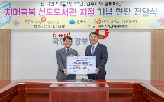 [아유경제=최다은 기자] 국민건강보험공단(이하 건보공단)은 지난 15일 `전 국민 의료보장 30년, 원주시와 함께하는 치매극복 선도도서관`으로 지정돼 기념 현판을 전달받았다.
