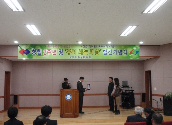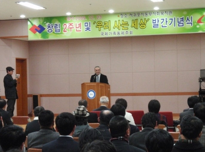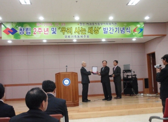 2009. 12. 23일 서귀포시동부종합사회복지관에서 국제가족동제주회(회장 오원종) 창립 2주년 및 '우리 사는 세상' 발간 기념식이 있었다.