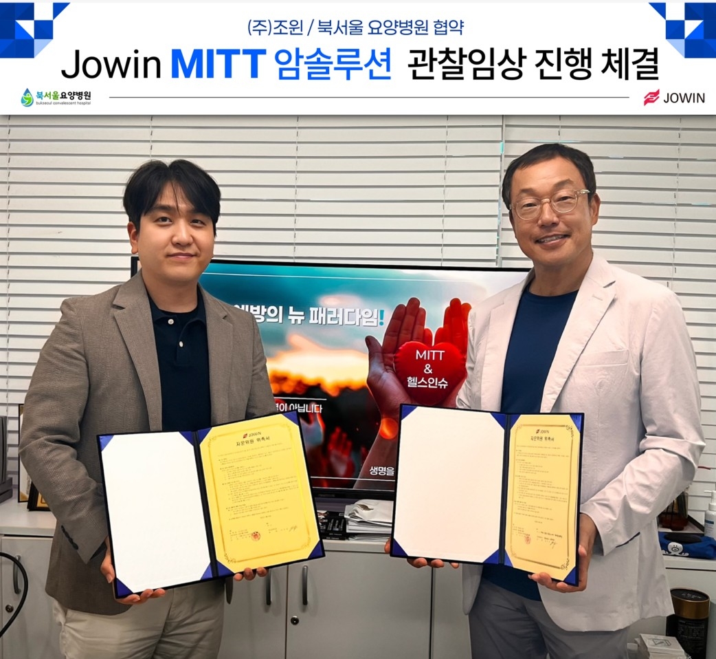 암 전문 헬스케어 기업 ㈜조윈(대표 유연정)은 북서울요양병원(병원장 김우성)과 함께, 난치암 및 말기암 환우를 위한 ‘MITT 암솔루션’의 관찰임상 협약(MOU)을 체결했다고 밝혔다.