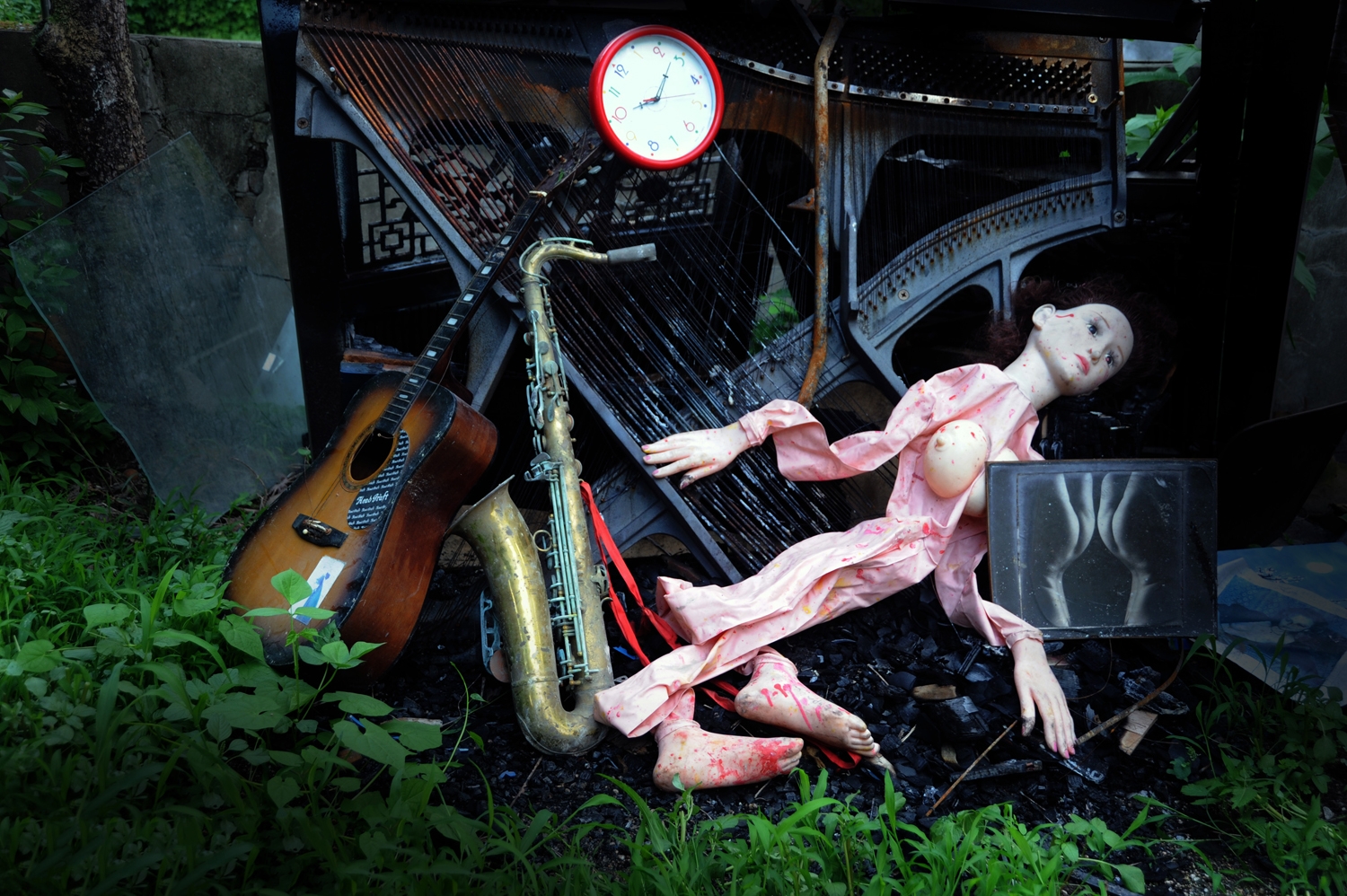 오후3시: 불탄 피아노와 누드, 연탄재와 누드, 항아리와 누드, 그리고 새빨간 한복