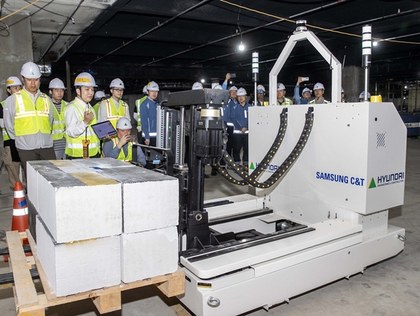 현대건설은 이달 3일 인천광역시 청라에 위치한 하나드림타운 현장에서 삼성물산과 공동 개발한 스마트 자재 운반 로봇 기술 시연회를 개최했다고 최근 밝혔다.