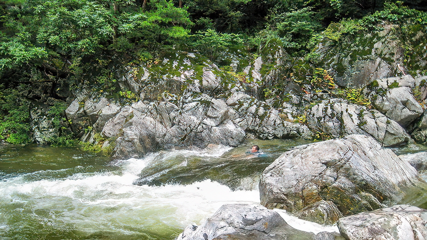 바위에 부딪칠 경우 매우 위험하긴 하지만 급류속으로 다이빙하거나 헤엄치는 산우도 있고, 가슴 위까지 빠지는 깊은 계곡물을 건너는 곳도 있다. 이런 곳은 물살도 제법 세므로 물깊이 및 물살세기에 따라서는 로프를 연결하여 안전을 도모해야 할 경우도 적지않다.(글,사진/임윤식)