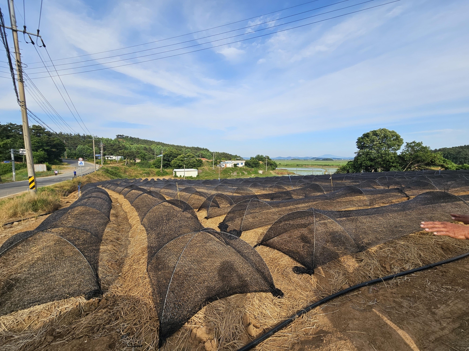 여름철 고온기에 35% 흑색 차광망을 설치하면 주간 기온이 2-4℃ 낮아지고, 지온 상승이 억제되며 토양 수분 유지력 향상, 잎마름 현상 및 열 피해 감소 등의 효과가 있다.