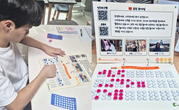 점자연습장은 점자를 쉽게 붙였다 떼며 반복해서 학습할 수 있도록 만든 촉각 교구로, 재미있는 상황 설명과 함께 놀이처럼 구성돼 점자에 대한 흥미는 물론이고 학습효과도 높일 수 있다.