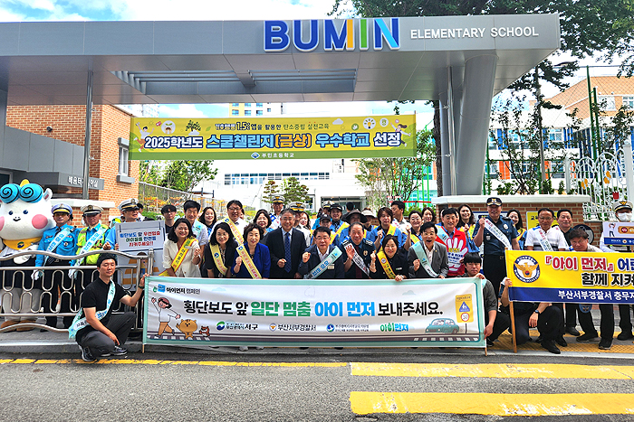 [에듀뉴스] 부산광역시교육청(교유감 김석준) 산하 부산서부교육지원청(교육장 이말숙)은 지난 4일 서구 부용동에 위치한 부민초등학교 주변 통학로에서 어린이 등굣길 교통사고 예방과 교통안전교육 일환으로 “아이 먼저 어린이 교통안전 합동 캠페인”을 실시했다.