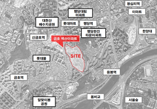 한편, 이 사업은 성동구 금호로 100(금호동1가) 일원 8만4501.7㎡을 대상으로 수직ㆍ수평 증축을 거쳐 지하 5층~지상 24층 공동주택 21개동 1963가구(분양 256가구) 및 지역공유시설, 부대복리시설 등을 조성하는 내용을 골자로 한다.