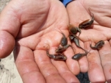 강진군 학명리 초동마을 박정웅씨의 친환경 벼 재배단지 일대에서 긴꼬리투구새우의 대량 서식이 확인됐다.
