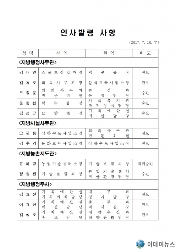 ◎ 승진 (201명) / 지정대리 (2명)상호명:(주) 이데이뉴스 | 제호: 이데뉴스닷컴 | 사업자번호 : 409-86-29149