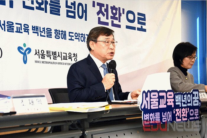 정근식 서울특별시교육감은 지난달 28일 교육청 기자회견장에서 ‘2026 새해를 맞아 신년 기자회견’을 열고 ‘서울교육 백년의 꿈, 변화를 넘어 ‘전환’으로’라는 주제로 2026 서울교육 주요정책을 발표하였다. 교육감은 “11개의 교육지원청 교육장들과 서울교육 백년을 향해 도약할 것”이라고 천명했으며 축구경기에서 11명의 엔트리가 뛰 듯 11명의 교육장 엔트리로 ‘미래를 여는 협력교육’을 완성한다는 계획이다.