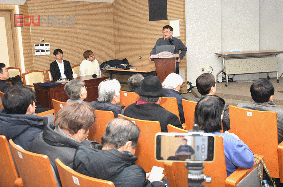 [에듀뉴스] 24일 오후 서울특별시청 서소문별관 후생동에서 조전혁 서울시교육감 잠정 예비후보가 ‘AI시대, 스마트하게 글쓰기’ 출간 기념 사인회 및 특강에서 “‘내로남불’이란 말을 국회에 있을 때 제가 처음 만들었는데 이제는 국어사전에도 올라가 있다”고 설명하고 있다.