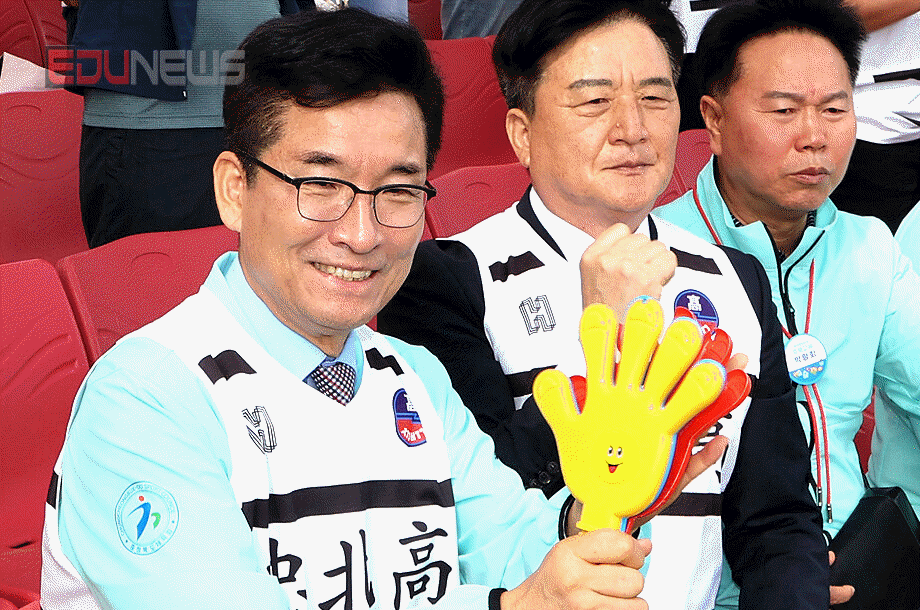 [에듀뉴스] 정근식 서울특별시교육감이 17일 오전 부산 강서하키경기장을 찾아 제106회 전국체육대회(전국체전)에 출전한 송곡여자고등학교 하키팀 선수들을 격려하고 경기를 관람하며 응원하고 있다.
