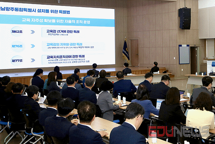 [에듀뉴스] 전라남도교육청(교육감 김대중)이 31일 본청 대회의실에서 ‘전남·광주 교육행정통합의 비전과 과제’를 주제로 전남교육 정책협의회를 개최했다.