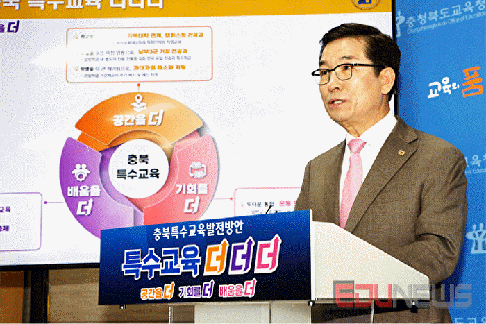 충북 다차원 학생 성장 플랫폼 ‘다채움 2.0’ 활용법 등 실제 수업에 즉시 적용 가능한 역량을 집중적으로 함양하고 있는 윤건영 충청북도교육감은 특수교육에 관한 본지와의 인터뷰에서 “충북 특수교육, 더더더 성장하는 길을 열겠다”고 밝혔다.