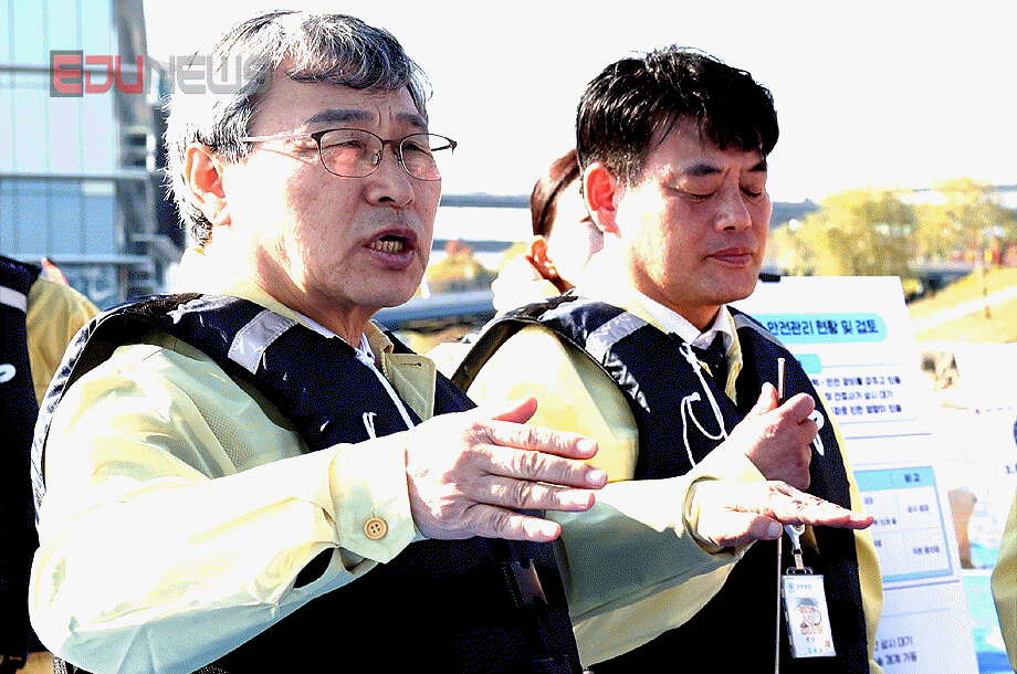 [에듀뉴스] 김민석 국무총리와 국회 강경숙 교육위원, 정근식 서울특별시교육감이 14일 오후 서울 광진구 서울시교육청 한강수상안전교육장을 찾아 운영 현황 등 안전점검하고 있다.