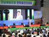 전남 강진군이 지난 7일 강진 국민체육센터에서 1천여명의 새농민회원이 참석한 가운데 전남 새농민회 한마음전진대회를 성황리에 마쳤다.