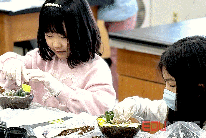 학교 관계자에 따르면 먼저 ‘겨울방학 원예교실’은 1월 6일부터 7일까지 이틀간 학교사회복지실에서 운영됐다. 1~5학년 재학생을 대상으로 원예 전문 강사가 진행하며 학년군별로 다육식물 테라리움과 수경재배 어항 테라리움 만들기 활동이 이루어진다. 학생들은 식물의 생장 원리와 관리 방법을 배우고 창의적인 표현 활동을 통해 스트레스를 완화하는 시간을 갖는다.