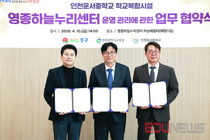 [에듀뉴스] 인천광역시교육청(교육감 도성훈)은 인천중구청과 지난 10일 영종국제도시 내 최초 학교복합시설인 ‘영종하늘누리센터’의 시설 운영·관리에 관한 실시협약을 체결하고 상호 협력하기로 했다.