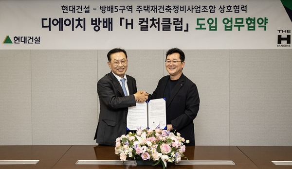 앞서 현대건설은 서울 종로구 계동 본사에서 방배5구역 재건축 정비사업조합과 H 컬처클럽 도입을 위한 업무협약(MOU)을 체결했다. `디에이치방배` 커뮤니티에는 다양한 오브제와 작품을 설치해 입주민들이 일상속에서 특별한 경험을 누릴 수 있도록 구성된다. 갤러리와 같은 공간의 경험이 특화된 외부 조경으로 이어지면서 단지 전체가 하나의 문화 공간으로 조성될 예정이다.