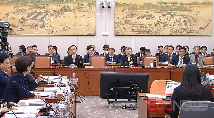 그런데 20일 오전 서울 여의도 국회 교육위원회의 서울, 경기, 인천교육청국감(서경인국감)장에서 대부분의 위원들은 교육청에 대한 회초리를 가감없이 휘둘렀으며 정근식, 임태희, 도성훈 교육감들은 바늘방석 위에서 진땀을 빼며 질의에 대한 답변을 했다.