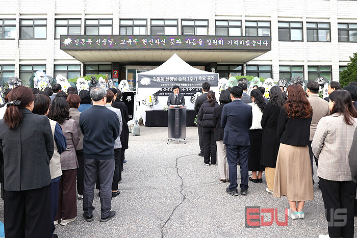 인천광역시교육청과 한국교원단체총연합회는 지난 21일 시교육청 본관 앞 추모공간에서 故 김동욱 선생님의 순직 1주기 추모식을 진행했다.
