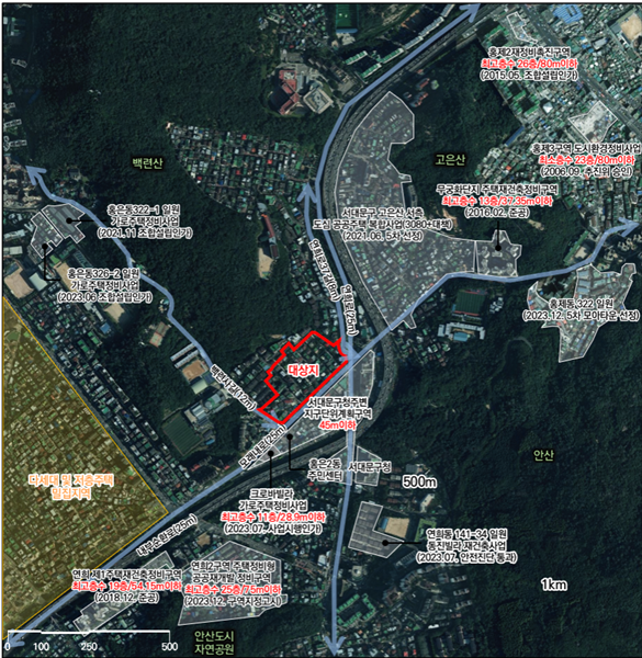 대상지는 서대문구청과 백련산 근린공원 인근에 위치한다. 2009년 5월 정비구역 지정 후 다음 해 조합이 설립됐지만 구역계 설정, 사업성 등 사유로 사업 추진이 정체됐다. 지난해 10월 정비계획(변경)을 토대로 수립한 이번 통합 심의(안)이 의결되면서 사업이 본격화되게 됐다.