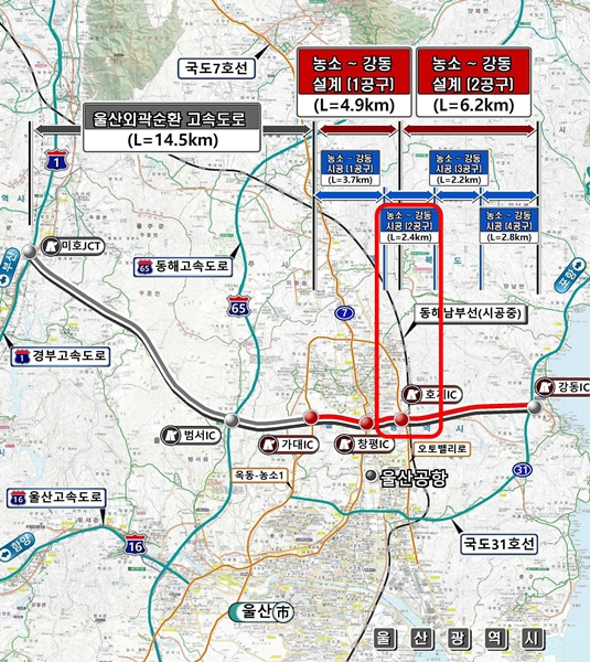 농소-강동 도로개설공사는 울산광역시 역대 최대 규모의 도로사업 중 하나로, 향후 울산외곽순환도로와 연결돼 울산 지역 동서 간 교통흐름 개선에 크게 기여할 전망이다.