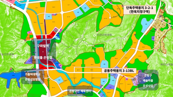 은평지구 매각부지는 공동주택건설용지(3-13블록)과 단독주택용지(한옥)다.