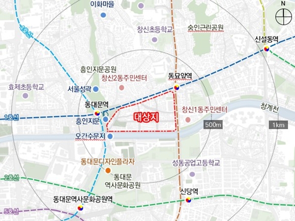 종로구 종로 328(창신동) 일원 규모 10만7997.5㎡의 대상지는 흥인지문과 청계천, 동대문패션타운 등이 맞닿아 있는 도심 중심부다. `2030 도시ㆍ주거환경정비기본계획` 등 상위 계획 변화에 따른 도심 관리 목표 실현과 기존 소단위 정비ㆍ관리 방식의 한계를 개선하고자 정비계획 변경이 추진됐다.