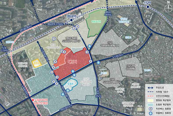 [아유경제=조명의 기자] 서울 영등포구 지하철 1호선 영등포역 인근 도림1구역(공공재개발)이 지상 최고 45층 아파트 2500가구 규모의 주거단지로 탈바꿈한다.