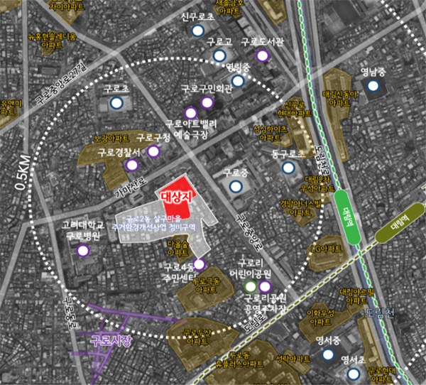 대상지는 구로구 가마산로22길 9(구로동) 일원 1만3690㎡로 저층 주거지와 근린생활시설이 혼재한 곳이다. 노후도가 높아 2023년 12월 휴먼타운 2.0 시범사업지로 선정됐고, 지난해 10월 살구마을 관리형 주거환경개선사업 정비구역 일부로 지정됐다.