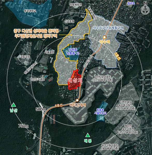 대상지는 남산 숲세권ㆍ버티고개역세권 지역으로 올해 7월 오세훈 시장이 `주택 공급 촉진 방안`을 발표한 곳이다.