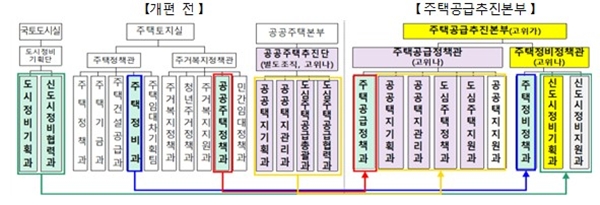 그간 국토부 내에 주택 공급 전담조직으로 공공주택추진단을 운영해 왔으나, 비정규 조직으로 운영되면서 조직의 안정성, 성과 관리 측면에서 한계가 있었다. 또 재건축ㆍ노후도시정비 등 주택 공급 관련 기능이 다른 조직에 분산돼 있었다.
