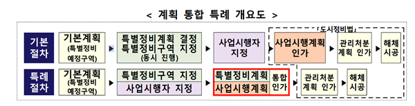 기본계획과 특별정비계획 수립ㆍ변경 절차도 병행할 수 있게 된다. 지금까지는 특별정비계획 수립 과정에서 기본계획 변경이 필요하면 이를 변경한 후 특별정비계획을 수립해야 해 행정 절차를 반복 진행해야 했다. 이에 개정안은 주민 공람, 지방의회 의견 청취, 유관 기관 협의 등 행정 절차를 동시에 진행할 수 있는 근거를 마련했다.