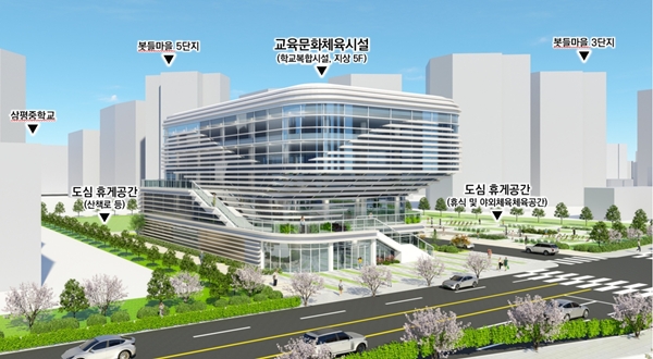 기본 구상안에는 연면적 약 1만5000㎡ 규모의 지하 3층~지상 5층 교육ㆍ문화ㆍ체육시설을 중심으로 도서관, 수영장, 문화센터, 주차장을 조성하고, 편익시설과 산책로가 어우러진 도심 휴게공간을 함께 마련하는 내용이 담겼다. 지하에는 수영장과 주차장, 지상 1~3층에는 도서관, 4~5층에는 문화센터가 각각 들어설 예정이다.