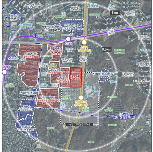 이번 정비계획은 지난해 11월 결정된 고덕현대(재건축)와 도시 공간적 조화를 고려하고, 고덕택지 지구단위계획구역 내 재건축 개발과의 연계성을 반영해 수립됐다.