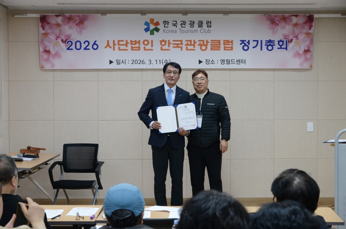 영월드센터에서 열린 ‘2026 (사)한국관광클럽 정기총회’에서는 현 이광현 회장을 3년 임기 차기 회장으로 재선임하고 임명장을 수여했다.