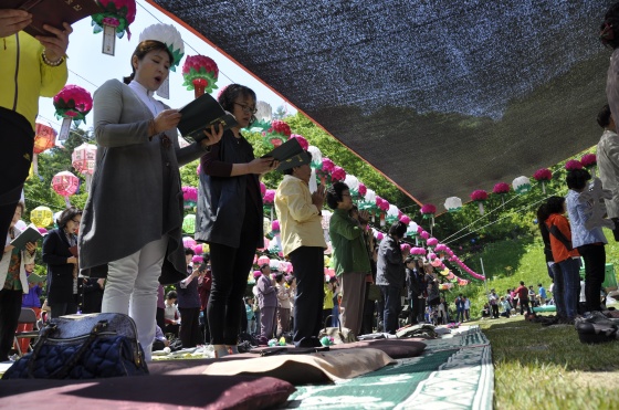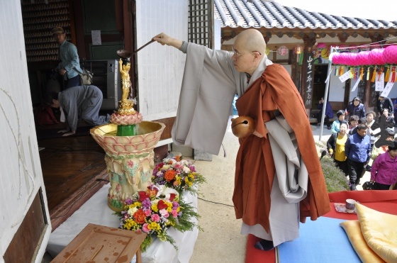 오전 10시 천수경을 시작으로 타종, 삼귀의례, 반야심경, 육법공양, 발원문, 청법가, 봉축법어, 관불의식, 축원, 사홍서원의 순서 후 점심 공양으로 이어졌다. 한편, 식전에 세월호 희생자를 기리는 묵념을 했다.